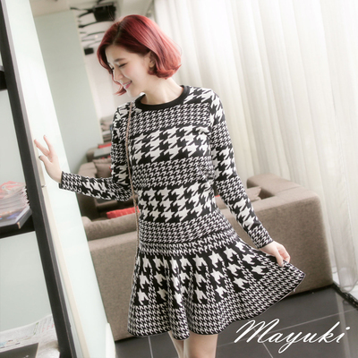 東京著衣【MAYUKI】千鳥針織上衣波浪裙套裝(共二色)