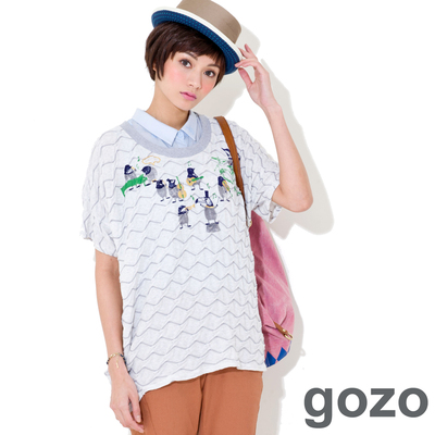 • GOZO學院風格波浪動物印花上衣 (淺灰色)