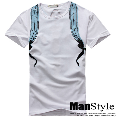 【01B5881】假後背包立體印刷設計短袖上衣T恤男。日韓趣味街頭風/白色/黑色/灰色