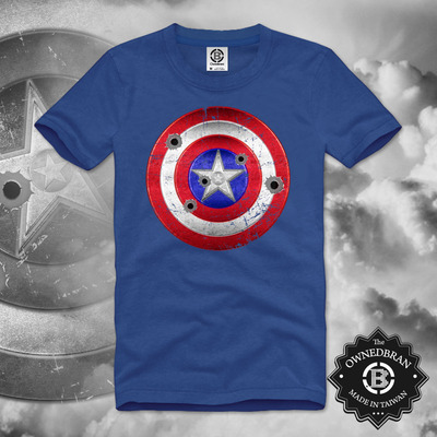 O.B歐布德 短T 美國星彈孔盾牌-灰藍色