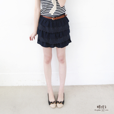 糖罐子-後縮腰蛋糕皮帶褲裙(共二色)