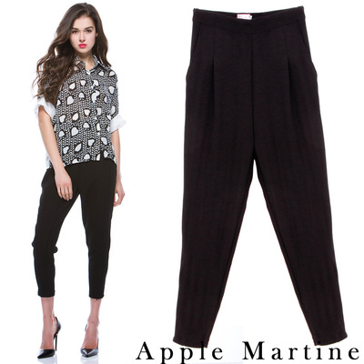 長褲 黑色高腰顯瘦窄管褲Apple Martine