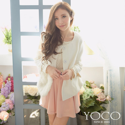 - 優美的短版大衣,在下襬拼接仿兔毛營造冬日氣息