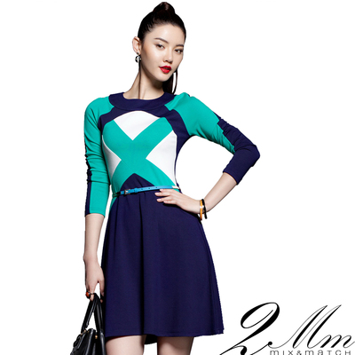 【2MM】立體交叉色塊拼接連身裙 共三色商品網址: