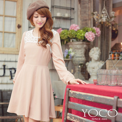 東京著衣【YOCO】繡花玻璃紗拼接束腰洋裝-S.M(共二色)-3018275