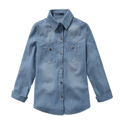 我覺得刷色長袖牛仔襯衫(淺藍)-CACO不僅穿起來合身舒適,自己感覺也變很有時尚的FU!!(哈哈哈!!!!)