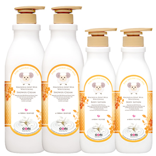 【coni beauty】白玉蘭山羊奶美體組(身體乳450ml兩瓶+沐浴乳1000ml兩瓶)