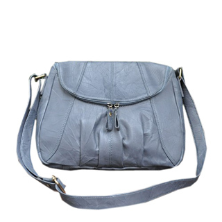 CALTAN - 荷葉抓皺微笑曲線斜背包- 抓皺灰