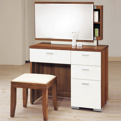 | 【CASA卡莎】坎特爾時尚淺胡桃3尺化妝台(含椅) 此款為淺胡桃3尺化妝台帶有簡約時尚感,整體明亮大方出色、細緻亮麗,流暢簡潔的線條點出個人獨有的時尚品味,使您更能享受簡約、舒適的生活空間【CASA卡莎】坎特爾時尚淺胡桃3尺化妝台(含椅),此產品為2010年最新款式,讓您臥室增添一點高雅明亮風,輕鬆打造獨特品味的居家空間,可千萬別錯過喔!