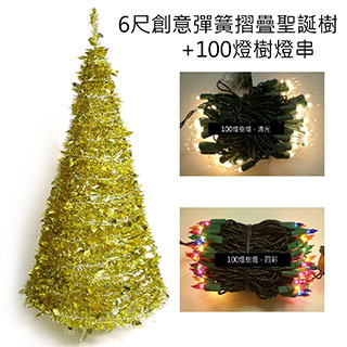本商品組包括 : 6尺/6呎(180cm) 創意彈簧摺疊聖誕樹 +100燈樹燈2串(清光/四彩光兩色選一)
