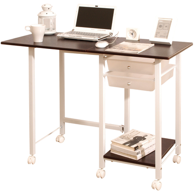 | SOHO收納折疊桌 隨著生活美學的提昇,家具不但要有設計感,還要有自己的個性與品味!SOHO收納折疊桌就是這麼一張貼近生活的收納折疊桌,台灣製造質感精良,桌面不用時可折疊收納,不受空間限制,隨意開展或折合,人性化設計,展開時多用途使用,並無侷限,桌體四個Nylon剎車輪,固定與移動皆精準更安全穩固;附2個抽屜置放小物更能活用桌面空間,胡桃色桌面搭配白色的桌腳,視覺具層次感,與任何材質色調的電腦椅或室內空間均可適切地搭配,多元化功能性可作為電腦桌、筆電桌、工作桌、邊桌…等。享受來自台灣生產(MIT)與世界同步的優質商品吧!