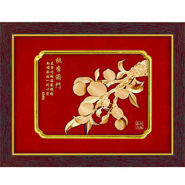 【開運陶源】 最佳謝師禮?金箔畫 純金框畫系列-桃李滿門福祿壽桃....33 x26 cm