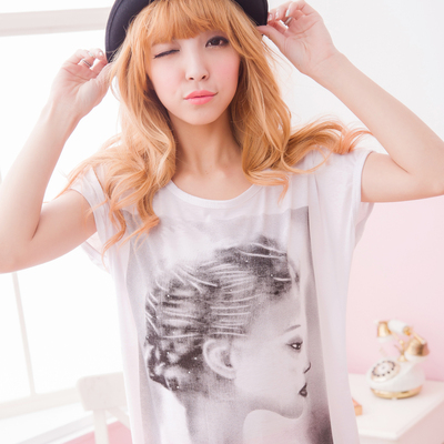 亮粉側臉印圖棉質上衣(魅力白)-Kilei綺麗商品網址: