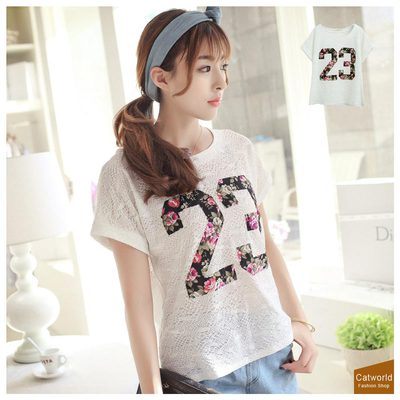 直到網友Michael介紹我上網買了一件Catworld 印花23數字蕾絲T恤白色,想不到品質和剪裁真的和夜市OR路邊攤差很多!!