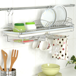 品名:【百變金鋼】不鏽鋼碗盤掛架(附抽屜8掛鉤)
