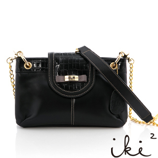 【iki2 真皮包】都會巴黎鍊帶金屬扣環小方包(魅力黑)
