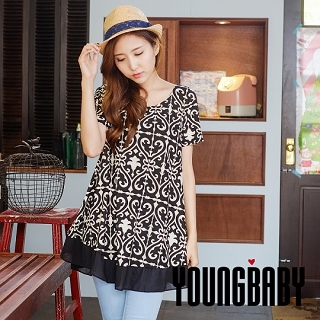【YOUNGBABY中大碼】雪紡裙襬傘狀彈性棉長寬上衣-洋裝(愛心)