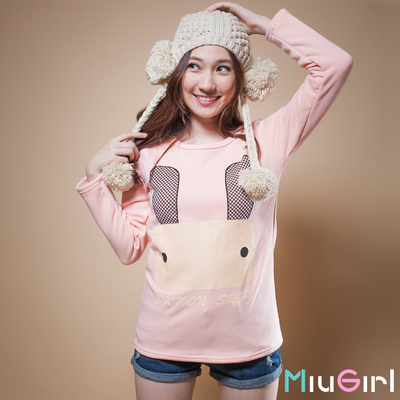 【MiuGirl】兔子圖案厚刷毛長袖T