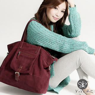 Voler Aile率性Elli歐美時尚麂皮拼接摔紋牛皮大口袋包2色商品網址: http://www.momoshop.com.tw/goods/GoodsDetail.jsp?i_code=2113...