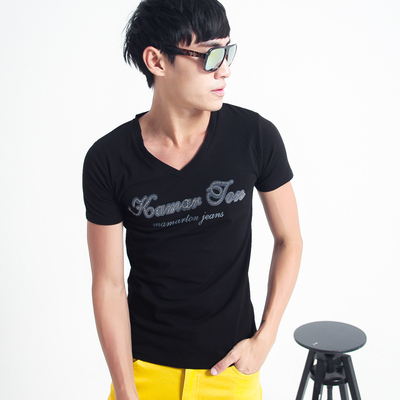 【MAKER NET】排字草寫英文貼鑽短T-共二色 人氣必備休閒潮流單品