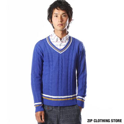 ZIP日本空運男裝,運用粗織與麻花編織,營造出經典又出色的針織毛衣上市。 V領與下擺的雙線設計,為經典的帝爾登學院風格,任何年齡層的朋友都很適合來搭配的單品款式。 柔軟又具伸縮彈性的針織純棉布料,具有一定的伸縮感與保暖感,日本流行時尚連線單品款式,非常推薦。