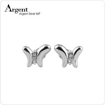 【ARGENT銀飾】微鑲鉑銀閃亮系列「小蝴蝶(白K金)」 純銀耳環