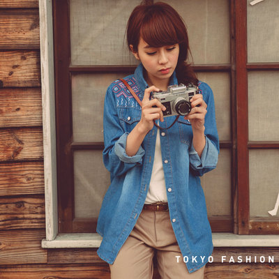 東京著衣 圖騰繡花牛仔襯衫(共二色)