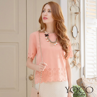 東京著衣-YOCO 糖果色燒花短版上衣(共三色)-4007638