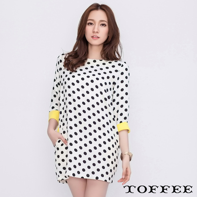 圓點七分袖洋裝-TOFFEE(韓風白)
