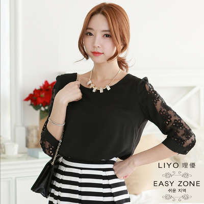 雪紡上衣鏤空蕾絲雪紡上衣LIYO理優