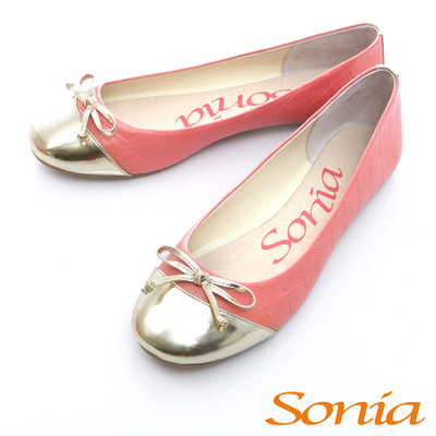 鞋款品名:Sonia國民時尚?拼接菱格紋平底鞋-桃紅