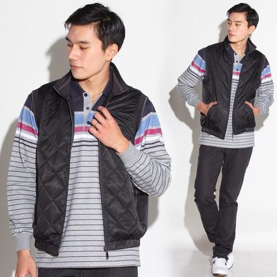 Christian 復古立領車格鋪棉防風背心_黑_JW101-88