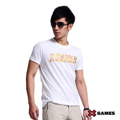美國X GAMES-迷彩字母圓領棉質TEE-男-經典白