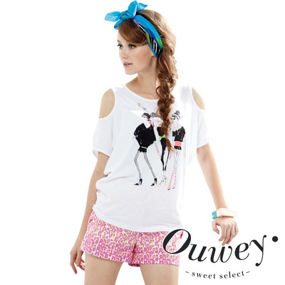 OUWEY 歐薇名品 小香肩娃娃圖俏皮T恤