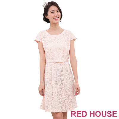 RED HOUSE-蕾赫斯-圓領蕾絲洋裝(淺粉色)