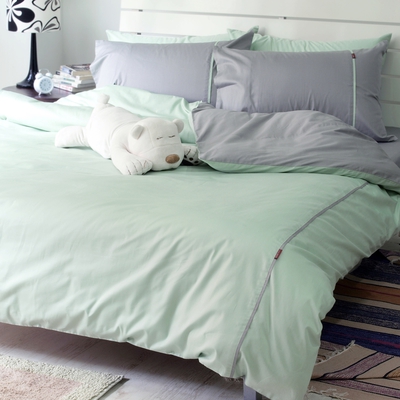 LITA麗塔(繽紛玩色-薄荷)加大四件式純棉薄被套床包組