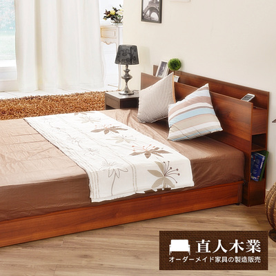 日本直人木業傢俱~5尺胡桃色雙人床架~簡約收納功能~