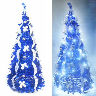 【聖誕裝飾品特賣】6尺/6呎(180cm 浪漫裝飾彈簧摺疊聖誕樹-銀藍色系(內含一條LED100燈串)
