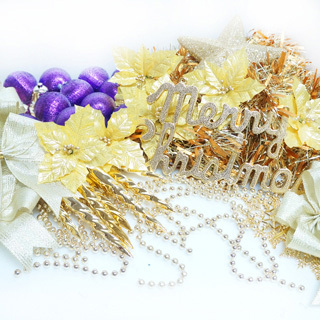 【聖誕裝飾特賣】聖誕裝飾配件包組合-金紫色系(8尺(240cm)樹適用(不含聖誕樹 不含燈)