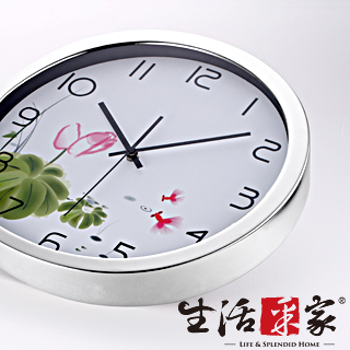 【生活采家】荷舟輕曉35cm不鏽鋼框靜音掛鐘(#01027)
