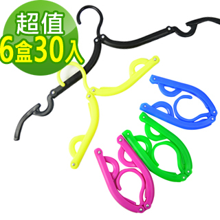 【Life Plus】三段摺疊式伸縮創意衣架(6組30入)