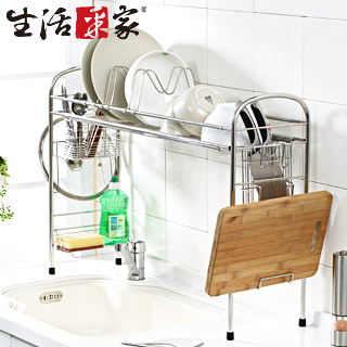 台灣自製優良商品又來了,外銷國外的優質商品,現在有機會在國內就可以買到了!!擁有二十幾年外銷經驗,商品深受歐美日等地區肯定,堅持不用次級材料,只選用正統高級#304(18-8)不鏽鋼,品質好不會生鏽,絕對是您的不二選擇!!跨海大橋又來了!!收納功能超強,寬度可伸縮,配合您的廚房水槽或其它空間!!◆台灣製商品非大陸製品,作工細緻。◆內部高度增高為45cm,遇鵝頸式水龍頭高度也可使用。◆寬度可調整75.5~91.5cm,橫跨於水槽上,清洗瀝水更便利。◆附盤架、筷籃、刀架、洗碗精架、鍋蓋架、砧板架、雙掛勾等配件。◆採18-8不鏽鋼材質,不會生鏽,容易清洗保養,經久耐用。◆不鏽鋼材不電鍍,直採採用不鏽鋼本色,長保如新,衛生可靠。◆有別於其它市售機種,全架均採#304(18-8)不鏽鋼材,品質最佳最划算。◆清洗後可將物品直接跨置於水槽上方滴水風乾,不會有櫥櫃異味問題。◆腳柱處採加高型設計,可閃過大部份水龍頭,不會影響清洗時的手部動作。◆層架的四個腳可依安裝處狀況選擇使用原本腳墊或改用加附的吸盤。◆附有盤架、筷籃及獨特的洗碗精架,實用功能多更多,您不能錯過的好幫手。※SUS304材質,可抗日曬無遇水生鏽問題,SUS304為同質產品最高規格材料,一般不標示材料序號的坊間產品大多是以SUS201或較低階不鏽鋼材所生產的唷~注意事項: