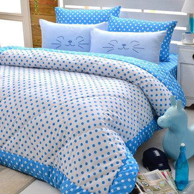 Goelia歌利亞 甜蜜回憶-藍 精梳棉立體壓花加大鋪棉兩用被套床包四件組