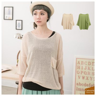 口袋前短後長針織衫共二色 Catworld