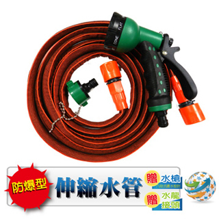 【金德恩】高彈力3.8米防爆型伸縮水管-贈八段式水槍+鍊條式水龍接頭-臺灣MIT