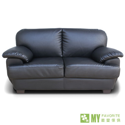 可樂娜日式小巧型2人座皮沙發(黑色)-高質感系列