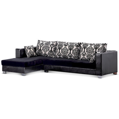 ◆產品名稱:2H 【貝莉莎】鱷魚皮紋L型沙發組(亮黑鱷)