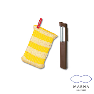 【MARNA】廚房專用金屬菜瓜布削皮器組(黃咖啡)