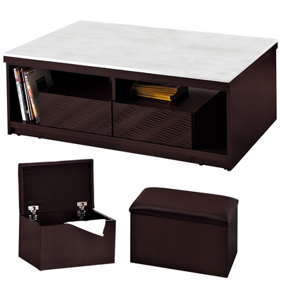愛比家具 愛德新烤黑石面大茶几(含兩個收納椅)商品網址: