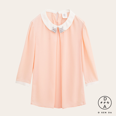 ORENDA-配色水鑽領氣質出眾雪紡上衣-S.M.L-粉膚